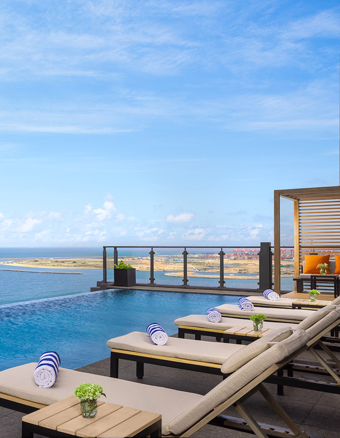 休閒旅客可在絕美的無邊際泳池盡情放鬆,而商務旅客則能使用多功能會議空間,這個空間最多可容納 250 位賓客,適合舉辦會議、婚宴與各類社交活動。